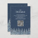 QR code wedding detail card inserts for your rustic winter wedding with a snow covered forest at night in dark blue and white. Use these cards to direct your guest to your wedding website for more details about your accommodations, directions or to RSVP online.