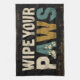 Rustic "Wipe Your Paws" Sign with Paw Prints Tea Towel