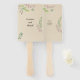 This elegant yet trendy hand fan features a delicate illustration of greenery on the borders with a rustic texture background. The timeless design is perfect for a wedding at any time of the year. The front includes the names of the bride and the groom, the back includes the date and place of the wedding. This information is editable and can be replaced by any message of your preference.