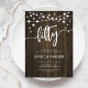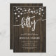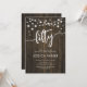 50th Birthday Party Invitation. Rustic design with dark brown wood pattern. Classy invite card featuring fairy string lights and script font. Perfect for a stylish fiftieth bday celebration. Personalise with your own details. Can be customised for any age! Printed Zazzle invitations or instant download digital printable template.