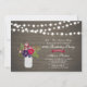 Celebrate your special day with this stylish surprise birthday invitation. This design features string lights, autumn colour flower bouquet with a mason jar on a rustic wood background. You can customise the text to any age or event.