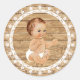 Rustic Wood and Lace Baby Shower Sticker. Classic Round Sticker