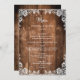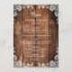 This rustic wood and lace country wedding menu is a charming and romantic way to invite guests to your special day. It features a wooden background with a subtle grain texture, delicate lace accents, making it perfect for a country-themed wedding or for couples wanting a warm and intimate feel. Use the design tools to update the text and the font.