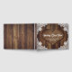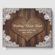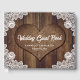 Elegant rustic wedding guest book inspired by a burlap heart on a wood background adroned with white floral lace. Perfect choice for a romantic rustic wedding party.