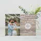 Beautiful rustic wood and string lights Save the Date card. Easily personalise this template with your details!