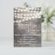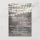 Rustic wood and string lights wedding reception card. a vintage grey wood background decorated with string of lights. Perfect wedding invite for wedding with night lights wedding theme, barn theme, garden theme, outdoor wedding with twinkle lights.