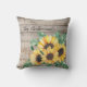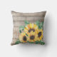 Rustic Wood and Sunflowers Throw Pillow