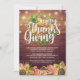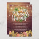 Thanksgiving Dinner Party Invitation Card Templates - Elegant " Happy Thanksgiving " Script, Autumn Maple Leaves, Pumpkins and Sunflowers Pumpkins on Rustic Wood Background.