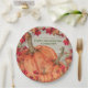 Rustic Wood Autumn Orange Pumpkins Fall Leaves Paper Plate