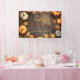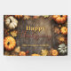 A stunning customisable Thanksgiving banner featuring a rustic wooden background. This design is beautifully accented with an abundant cluster of pumpkins and rich autumn leaves in vibrant fall colours. The "Happy Thanksgiving" text, alongside the family name is elegantly rendered in a golden, flowing script. Remember, all text is fully customisable to perfectly suit your celebration.