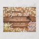 Announce your special day in style with our "Rustic Wood Barn String Lights Save the Date Postcard". This charming postcard features a delightful combination of baby's breath and twinkling string lights, exuding rustic elegance and romance. Customise it with your names and wedding date to create a personalised keepsake for your guests. Don't miss out on this opportunity to share your joy with family and friends in a beautifully rustic and heartfelt way. Shop now and set the stage for your unforgettable wedding journey!