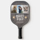 Rustic Wood Best Dad 3 Photo Collage Keepsake Pickleball Paddle