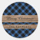 Rustic Wood Blue and Black Buffalo Plaid Christmas Classic Round Sticker