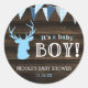 Rustic Wood Blue Deer Boy Baby Shower Classic Round Sticker