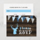 A rustic deer themed boy baby shower RSVP card.