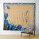 Rustic Wood Blue Floral Butterfly Backdrop Tapestry