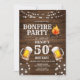 Rustic Wood Bonfire Party Beer 50th Birthday Invitation