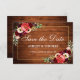Rustic Wood Watercolor Burgundy Marsala Floral Boho Wedding Save The Date Engagement Announcement Card