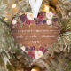 Rustic Wood, Watercolor Burgundy Marsala Floral, Our First Christmas as Mr. and Mrs. Personalized Heart Wedding Ornament