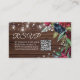 Rustic Wood Burgundy Floral Lights Wedding QR Code Enclosure Card