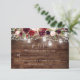 Rustic Wood Burgundy Floral Lights Wedding RSVP Card