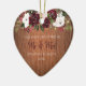 Rustic Wood Burgundy Floral Newlywed Photo Ceramic Tree Decoration