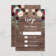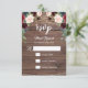 Rustic Wood Burgundy Flowers RSVP Card with Marsala Flowers