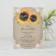 Rustic floral bridal shower invitation featuring sunflowers on a burlap and lace background.