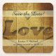 Rustic Wood Carved Love Save the Date Square Paper Coaster