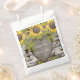Rustic wood carved names bride groom, yellow Sunflowers wedding Favour Bag