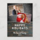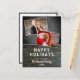Rustic Dark Wood Chalkboard Snow Holiday 2 Photo Christmas Postcard. Dark wood texture and dark grey chalkboard background with snowfall. The design has a modern white script - personalise any text. The postcard has 2 photos collage - insert your photos into the template. On the backside is a template for the sender`s address. Celebrate the holidays with this chic Christmas postcard.