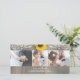 Rustic country wood - lace and sunflower wedding thank you card with 3 wedding photos