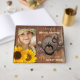 A guest book featuring your custom photo framed by an image of a rustic wood door and (optional) sunflowers. You can also replace the back image. Beautiful for a country wedding or bridal shower or other late summer celebration.