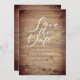 This rustic save the date card features an elegant script save the date above your details set in elegant typography on a rustic wood panels background. Designed by Thisisnotme©