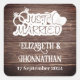 Rustic Wood Country Just Married Wedding Square Sticker