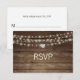 Having that outdoor rustic / country wedding theme? Beautiful wedding RSVP cards with twinkle lights and two mason jars with faux diamond hearts. Wood panel barn background. Font, size and colour of text can be changed. Back of card has both bride and groom's names. Contact designer for help.