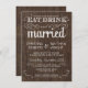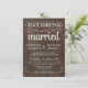 Eat, Drink, and be Married -- Vintage style rustic country wedding invitations -- Swirly, curly scrolls and old-fashion typography on brown barnwood background. Add your names and wedding info in this easy to use template. Elegant but fun and whimsical, chalkboard style script writing can be modified for your formal or semi-formal retro wedding theme. Casual modern style is perfect for trendy contemporary weddings with a fun touch of sophisticated romantic charm for the traditional bride and groom. Please contact us for help with customisation if you need additional room for your wedding details. Other sizes and chalkboard styles available.