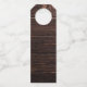 Rustic dark brown wood wedding wine bottle hanger tags with cream-coloured text. Includes the text, "Thank you for sharing in our special day." and the Bride's and groom's names and wedding date. Contact us for help with customisation or for matching products.