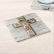 Rustic Wood Cross First Holy Communion Photo Square Paper Coaster