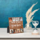 A modern and chic photo collage plaque designed with eight customized photos and a script calligraphy font of "grandma" in rustic wood background perfect as a gift for your grandma. (Photo courtesy of Unsplash. Kindly replace it with your own.)