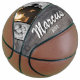 Rustic Wood Dad Name Keepsake 3 Photo Collage Basketball. Dark wood background. Add your photos, name and year. You can change any text on the basketball. This custom and personalised basketball is a perfect gift and a keepsake for a dad or a new dad on Father`s Day, birthday or Christmas.