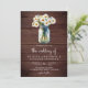Rustic Wood Daisies Mason Jar QR Code Wedding Invitation