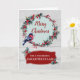 Merry Christmas for daughter in law card with rustic country wood pattern and watercolor christmas wreath with winter foliage and bird.