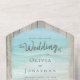 This all-in-one beach destination wedding invite includes the invitation and tearaway RSVP, and can be folded and mailed so you don’t need an envelope. Framed with a background of rustic weathered grey wood, beautiful aqua blue ocean waves crash against the beach sand.
