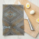 These rustic kitchen towels feature a diamond pattern on photographic weathered wood in soft aged shades of brown and pale blue. The beautiful earthy patina of the wood and the style of the geometric diamond pattern is a perfect blend that will compliment any kitchen from rustic country to modern urban kitchen. Personalise text on each edge individually with a Family Name or your own text.