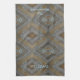 Rustic Wood Diamond Pattern Brown Blue Cabin Tea Towel