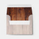 A beautiful lined RSVP envelope with a rustic wood design in rich browns inside and in pastel tones on the exterior. Your return address is printed on the front, you can easily personalise the template with your information.