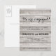 We are engaged party invitation postcard featuring a white wood background. More options on: http://www.zazzle.com/designbyredline or contac us for matching items