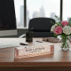 Designed for leaders who appreciate a grounded yet sophisticated aesthetic, this nameplate features a detailed dark wood background set behind a crystal-clear acrylic block. It serves as a perfect centerpiece for any wooden desk or a striking natural accent in a modern glass office. Whether you are searching for a unique corporate gift, this personalized sign offers timeless appeal.