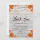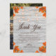 Rustic Grey Wood "Fall In Love" String Lights, Gold Sparkles & Fall Leaves Seasonal Wedding Thank You Card.